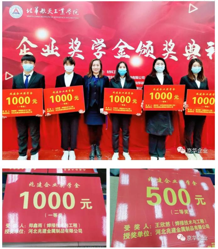 2021年12月1日北華航天工業(yè)學院、材料工程學院第一屆企業(yè)獎學金頒獎典禮在北華航天工業(yè)學院東校區(qū)隆重舉行,京華企業(yè)受邀參加此次頒獎典禮并與廣大學校領導、老師、同學共同見證了這一光輝而榮耀的時刻。