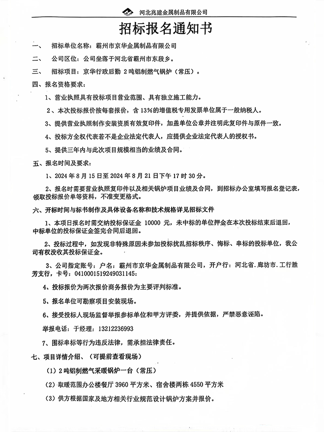• 招標業主: 河北兆建金屬制品有限公司